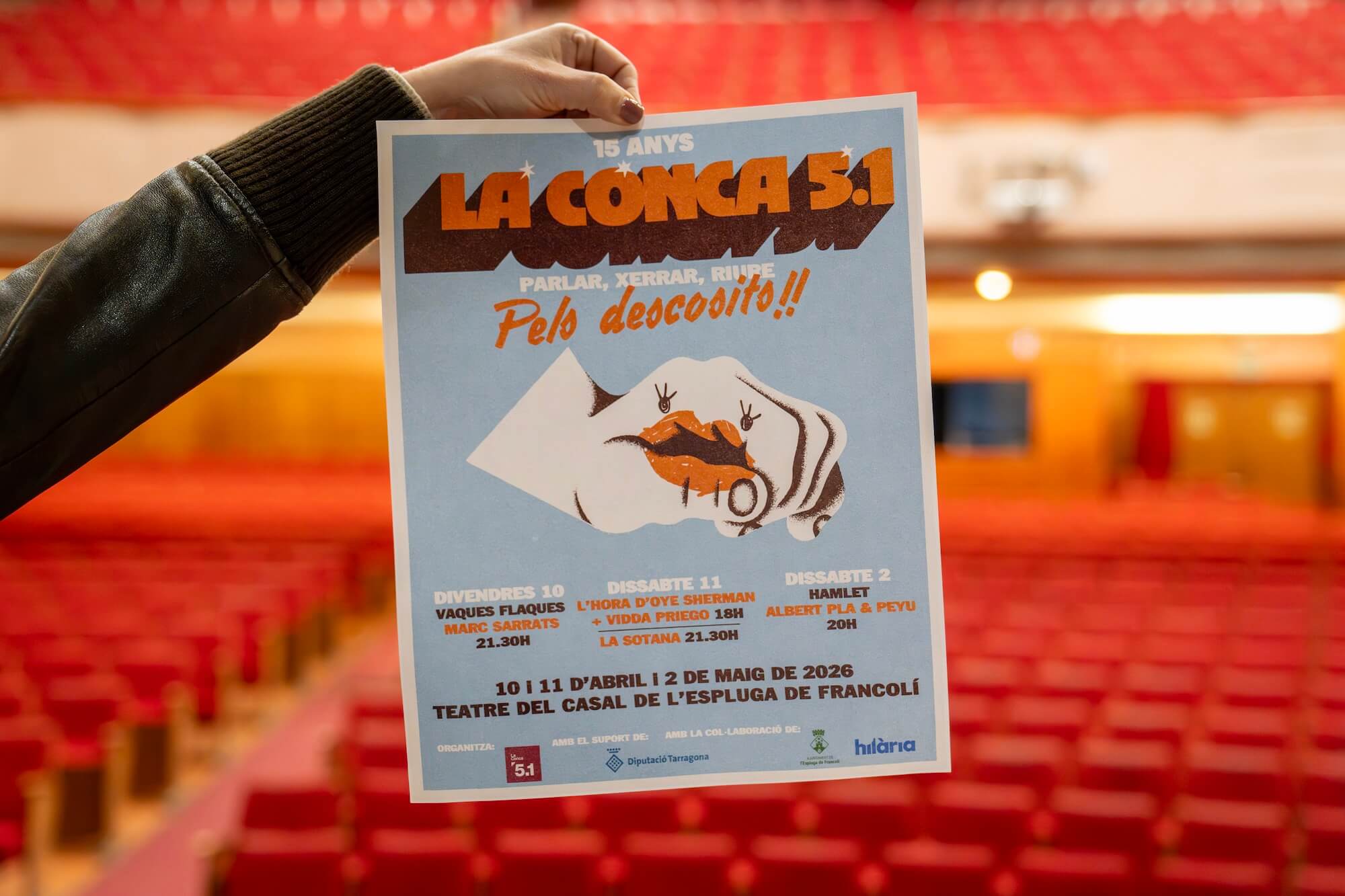 El proper 10 i 11 d’abril i 2 de maig el Teatre del Casal de L’Espluga de Francolí acollirà la primera edició del festival Pels Descosits!!. Organitzat per l’Associació La Conca 5.1 per celebrar els seus primers quinze anys d’existència. Una iniciativa que neix amb la voluntat d’acostar els grans formats de comèdia i humor en català a la Conca de Barberà. Una proposta que compta la col·laboració de l’Ajuntament de L’Espluga de Francolí.