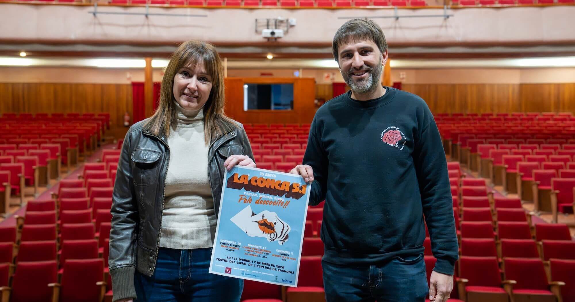 Avui s’ha celebrat la presentació pública del festival Pels Descosits!! Un acte al Teatre del Casal de L’Espluga de Francolí que ha agrupat a Leandre Romeu Serra, coordinador de La Conca 5.1 i a Mar Gili, regidora de cultura de l’Ajuntament de L’Espluga de Francolí.