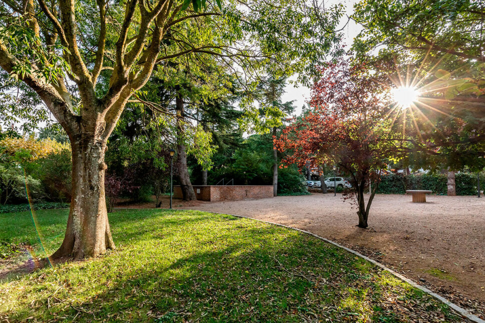 Jardí a l’aire lliure on es desenvolupen diversos actes culturals. Hi ha font, escenari i punt de llum. Durant l’estiu s’hi instal·la un tendal pel sol.